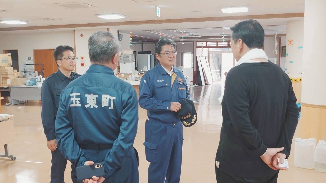 玉名市の商工会議所で予想される中小企業支援策についてご指導頂いた後、前田玉東町長にご指導頂き、被災した福祉施設を一緒に確認させて頂きました。大変な中、状況確認にご協力頂いた施設長はじめ施設の皆様に感謝申し上げます。
