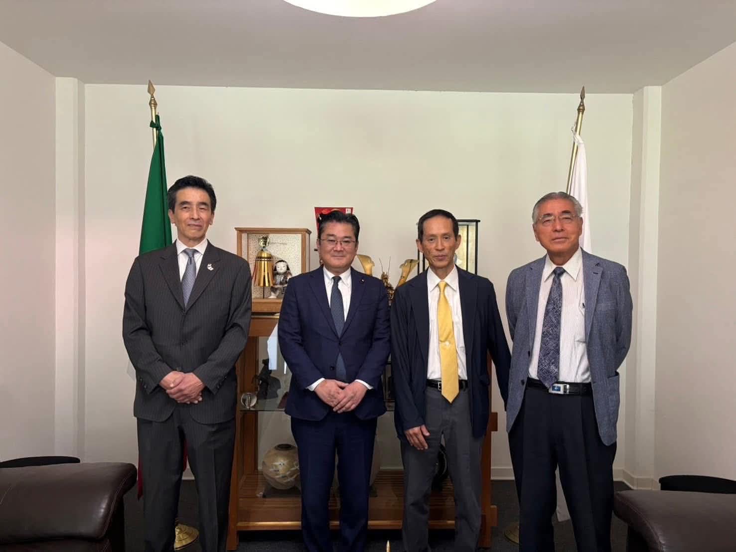 母国訪問海外日系人歓迎会 2025年9月19日 嬉しい再会です。 昨年8月メキシコを訪問したおり、表敬した日墨協会の皆様のうち、三井会長(当時は副会長)、和久井顧問と日本で再会することができました! 昨年はお会い出来なかった菅原相談役も交えて感動の記念写真です。昨年メキシコでお会いした写真も添えて。 今度はまたメキシコで会おうとのお言葉にウルウルしてしまいました。 コメントは受け付けていません。