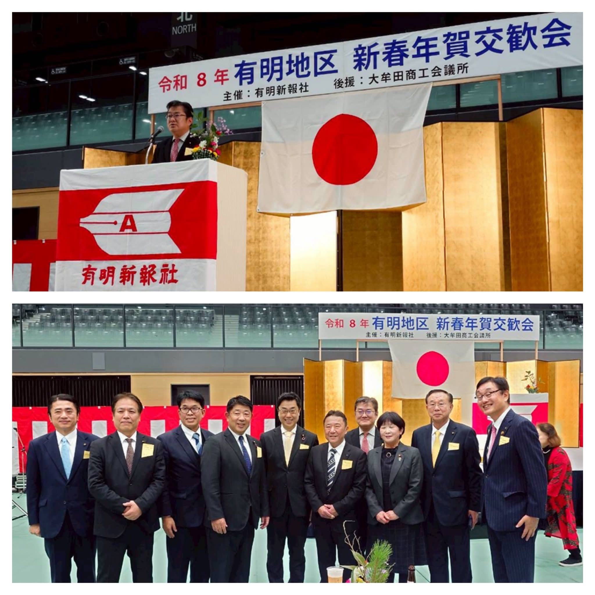 新年の集いに出席 2026年1月8日 玉名市新年賀詞交歓会、荒尾商工会議所新春年賀交歓会、熊本私教連新年祝賀会、有明地区新春年賀交歓会、大川地区合同新年祝賀会、公明党佐賀県本部を新春賀詞交歓会、他にも福岡商工会議所新年祝賀会にも参加させて頂きました。毎年、お招き頂き、心から感謝申し上げます。 ただ、誠に申し訳なく反省することは1年振りにお会いする方々がいらっしゃること。もっともっと地元を回る努力を怠ることの無いよう、心掛ける一年にして参りますm(_ _)m コメントは受け付けていません。