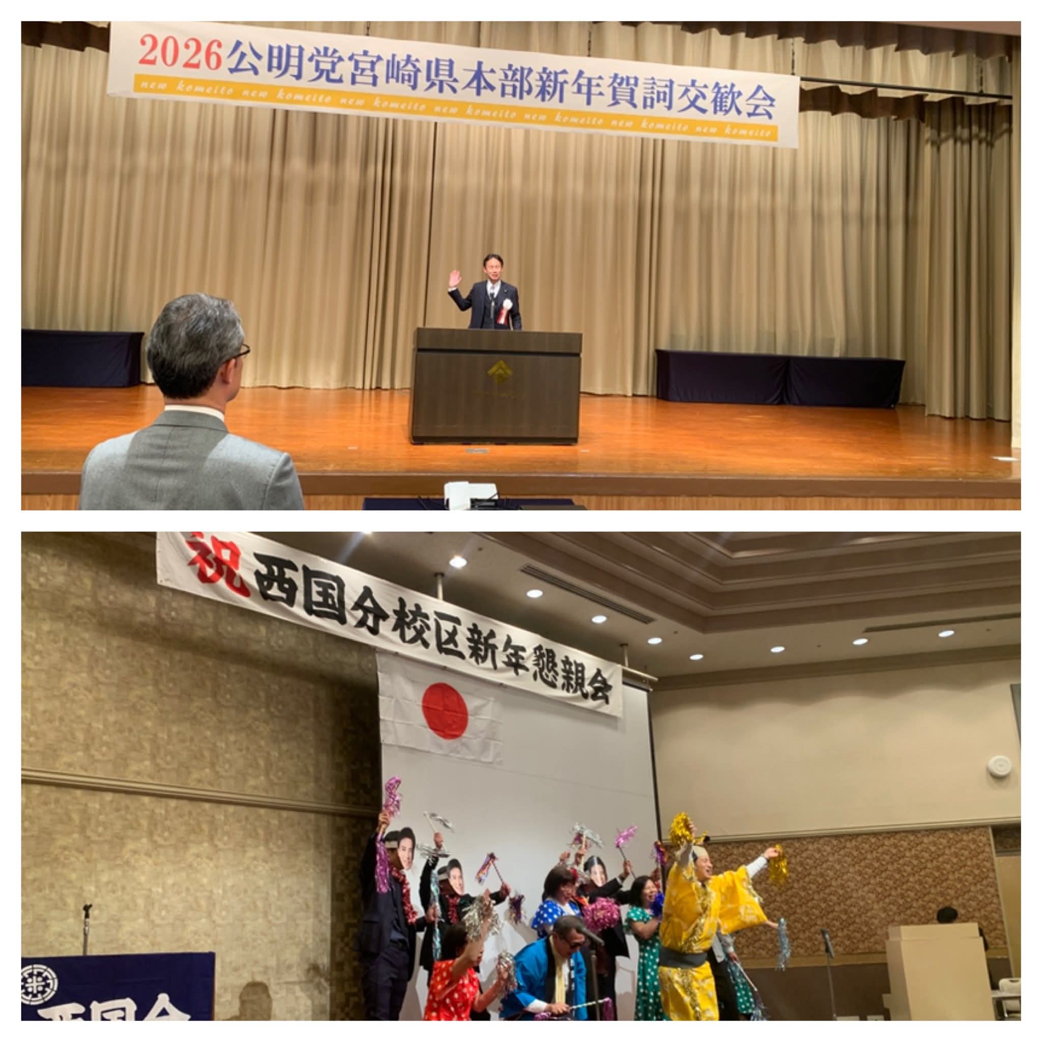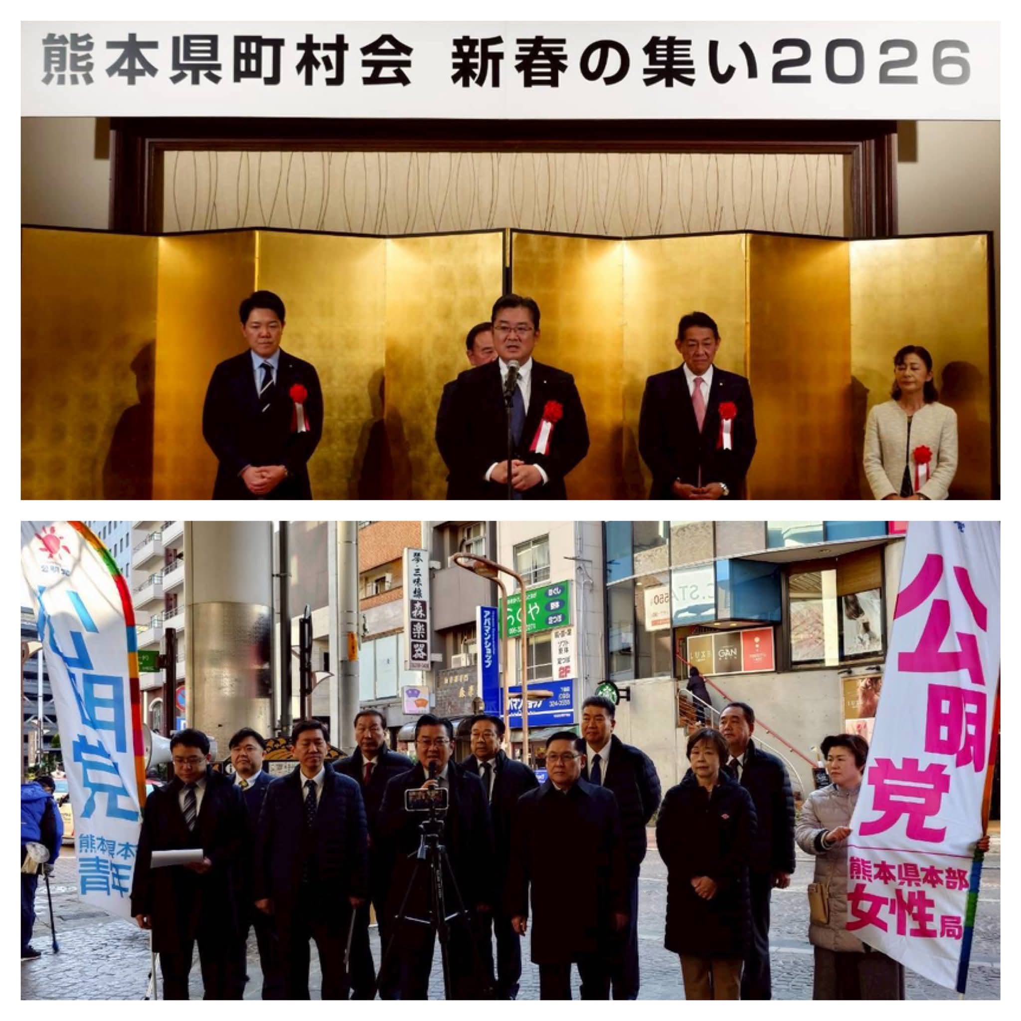 年始の会合 2026年1月12日 公明党宮崎県本部賀詞交歓会、久留米市西国分校区新年懇談会、公明党熊本県本部賀詞交歓会、熊本県町村会新春の集い、熊本市での成人街頭、他にも久留米市青峰校区新春祝賀会など多くの皆様にご挨拶申し上げました。 解散報道が賑わっています。政策の先に国民の姿が見えていないのではないかと疑問に思いますが、常在戦場の思いは変わりません。 コメントは受け付けていません。