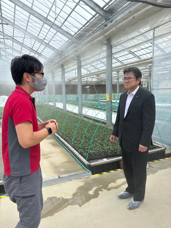 宿泊先の福島市のホテルを出発し、一路川俣町へ。藤原川俣町長と役場で意見交換の後、同町のベルグ福島のお取り組みを視察。同社は植物ワクチンの開発、ワクチン接種苗の実用化を進めておられます。先進的な農業でのイノベーションです。